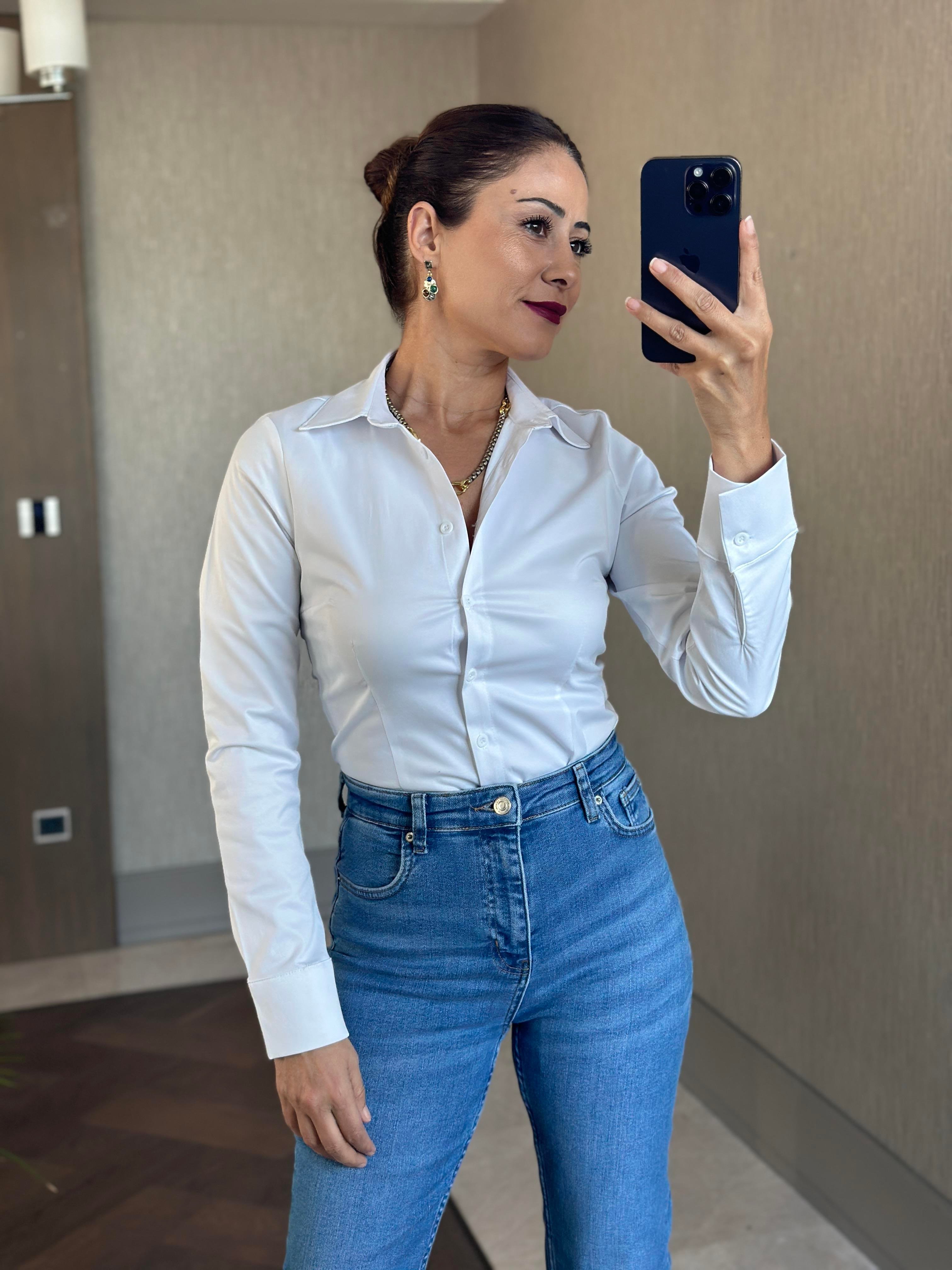 Beyaz Karol Klasik Slim Fit Kadın Gömlek