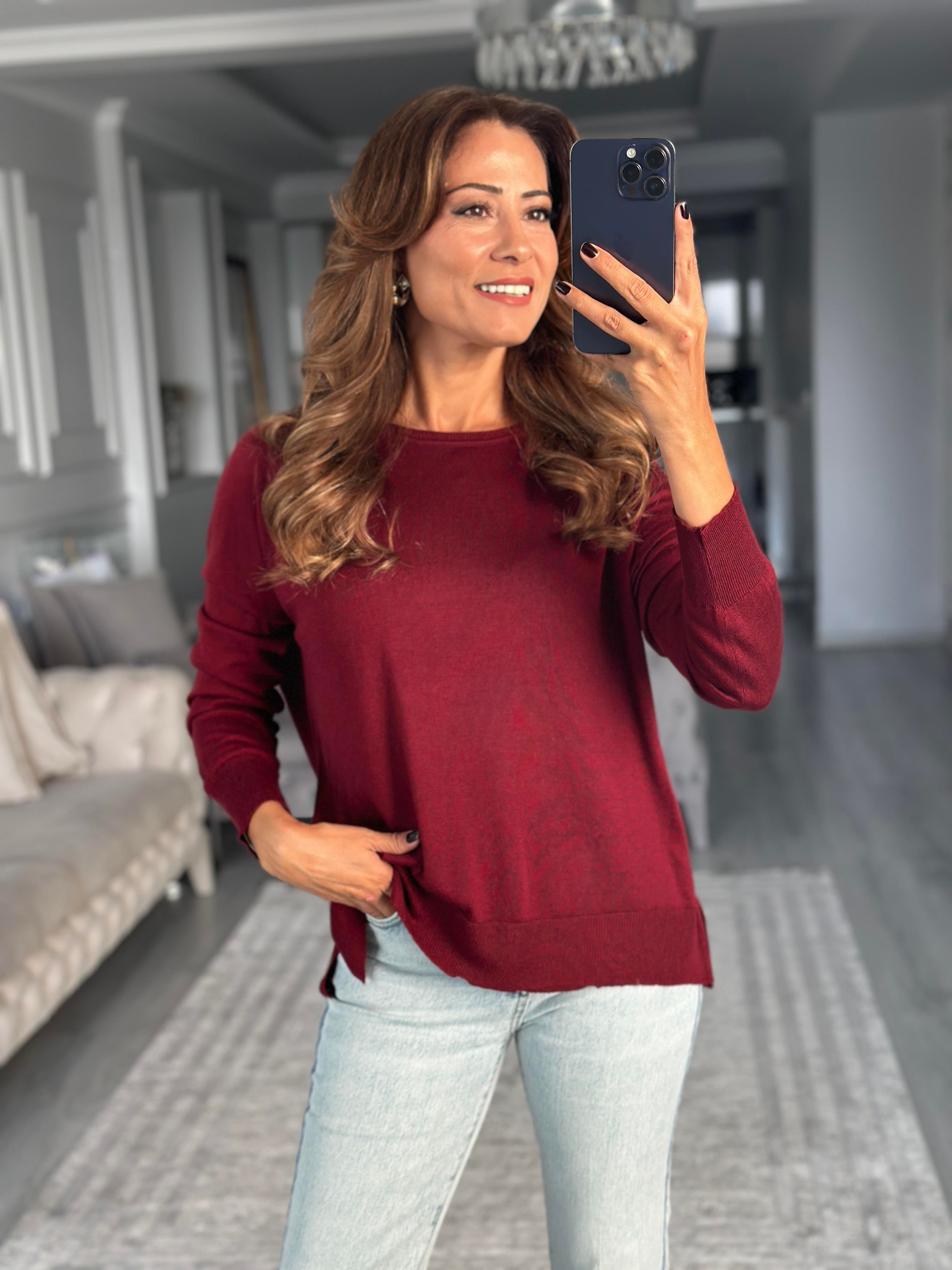 Bordo Bisiklet Yaka Basic İnce Merserize Kadın Kazak