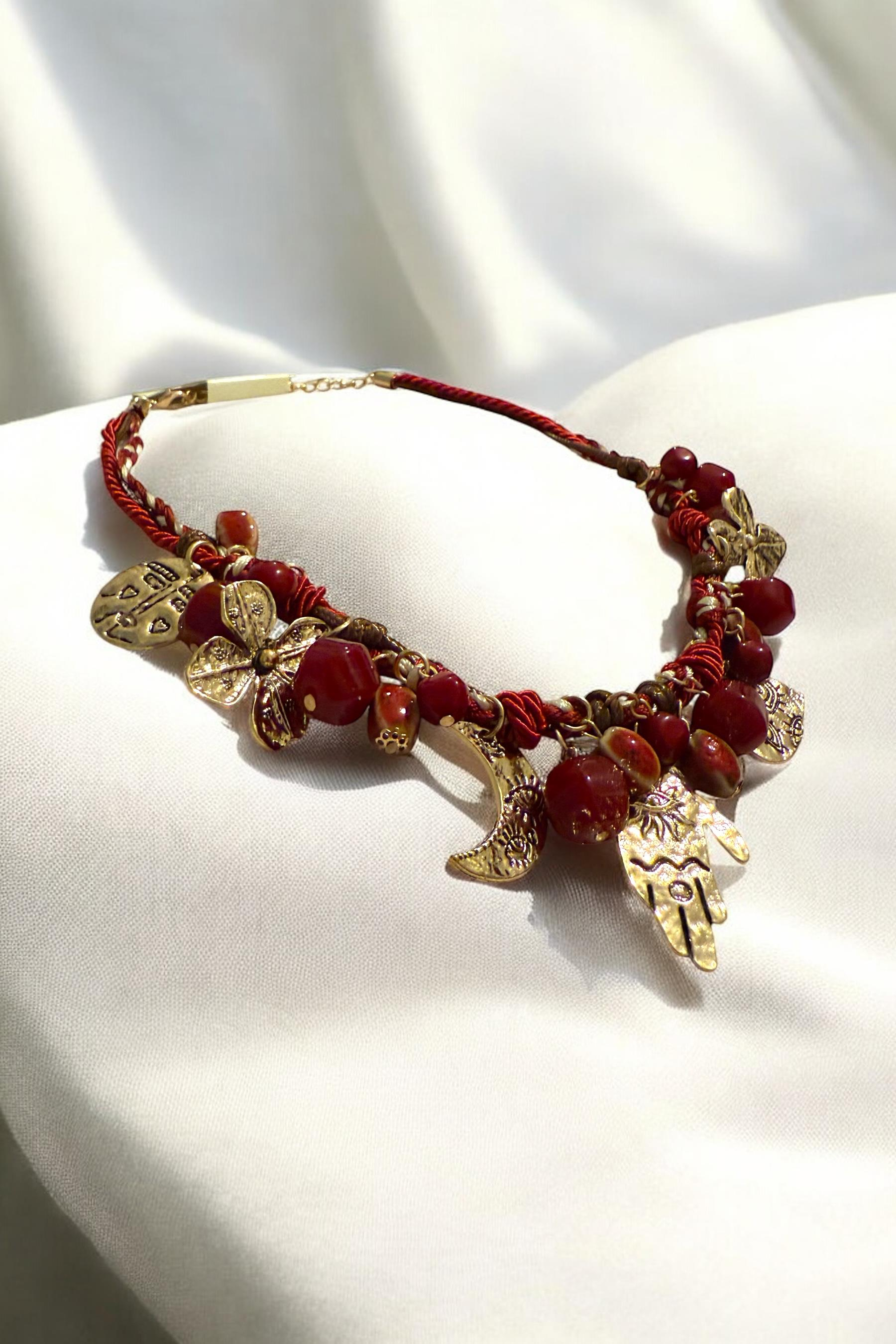Bordo Etnik Sembollü Kadın Kolye (FOR5198)