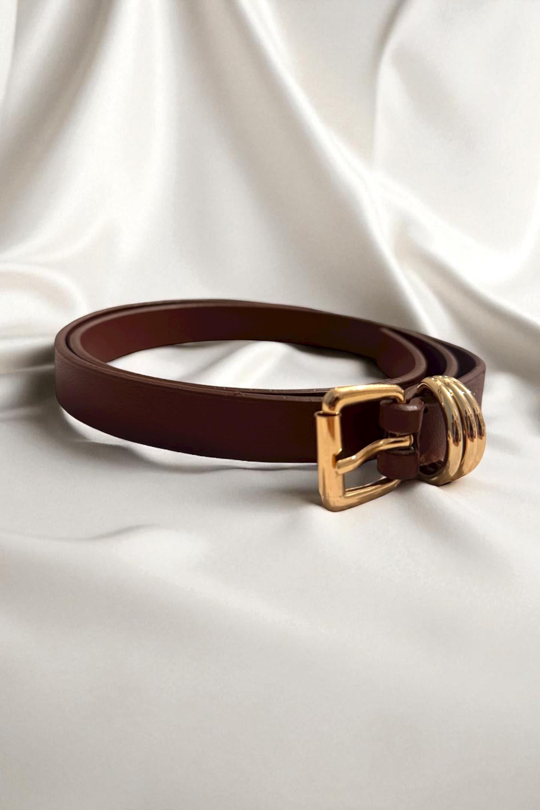 Bordo İnce Üç Köprülü Kadın Kemer (FOR5156)