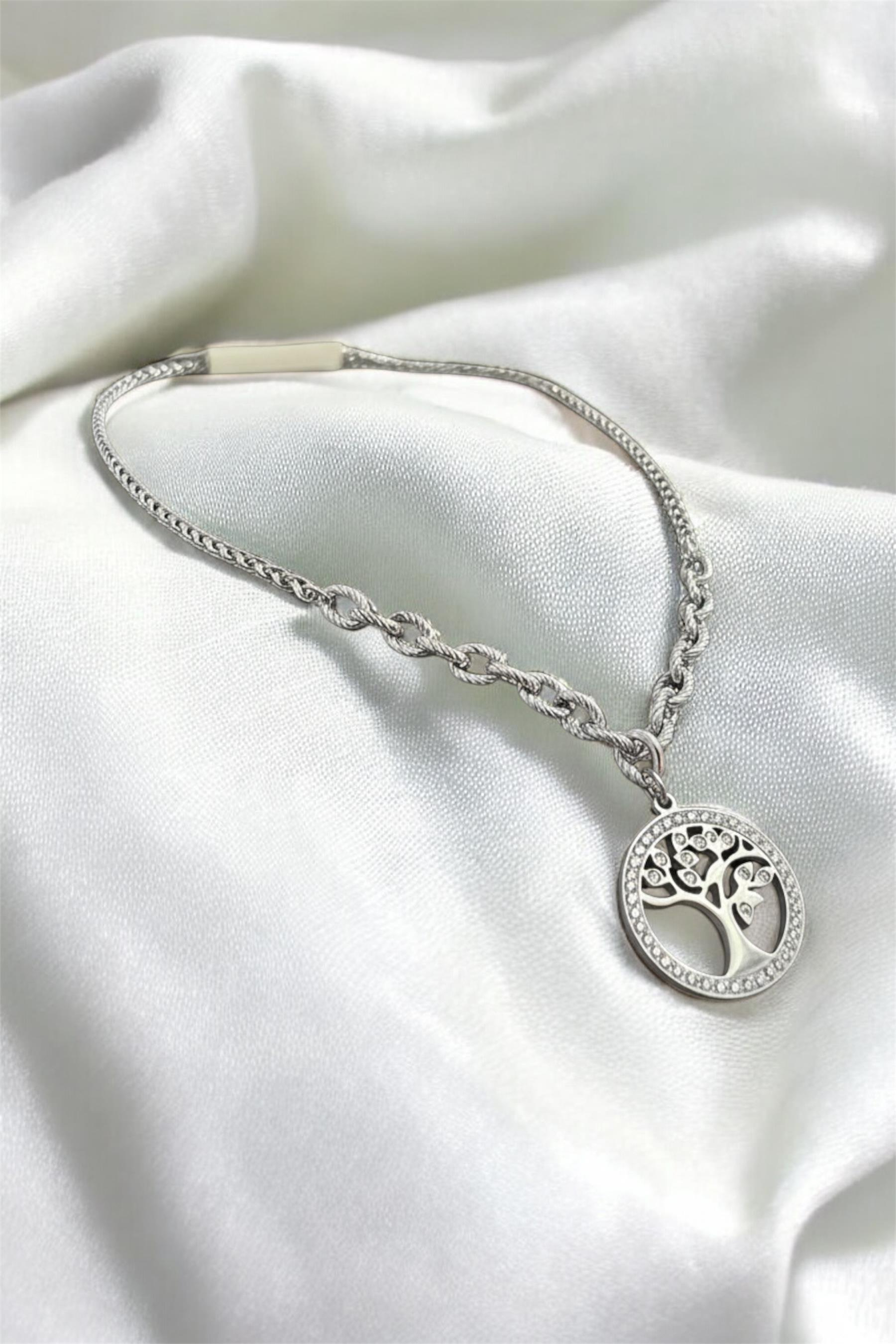 Gümüş Hayat Ağacı Çelik Kadın Kolye (FOR5208)