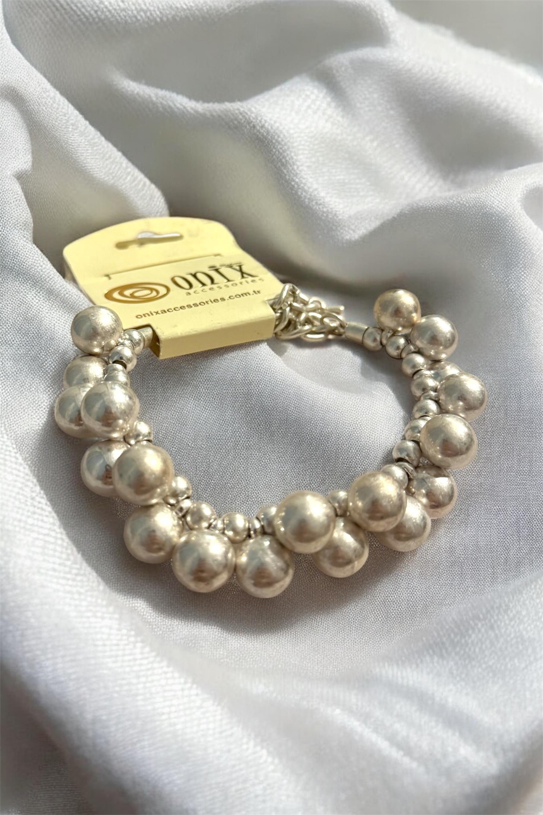 Gümüş İthal Dorika Metal Top Zincirli Kadın Bileklik