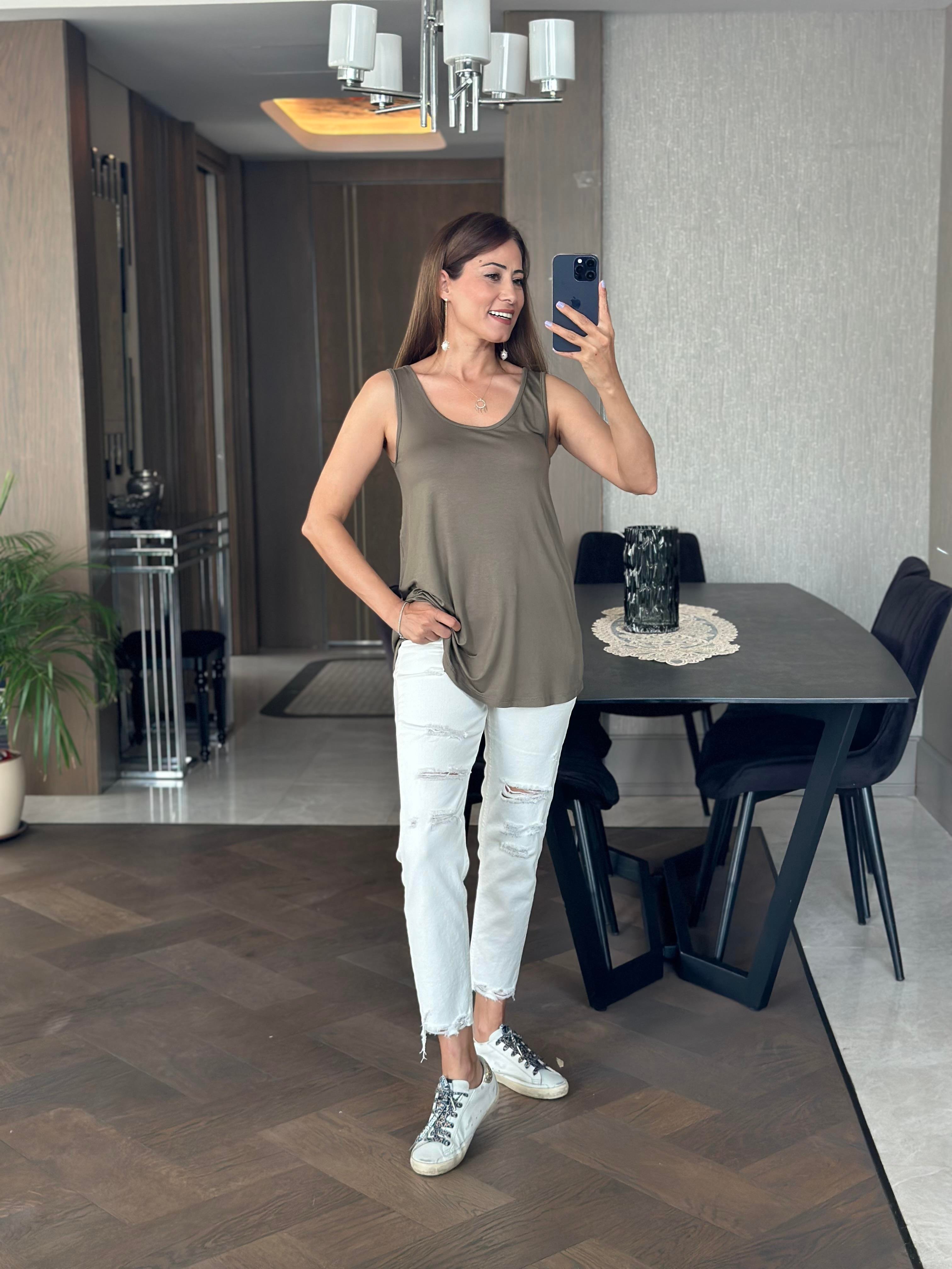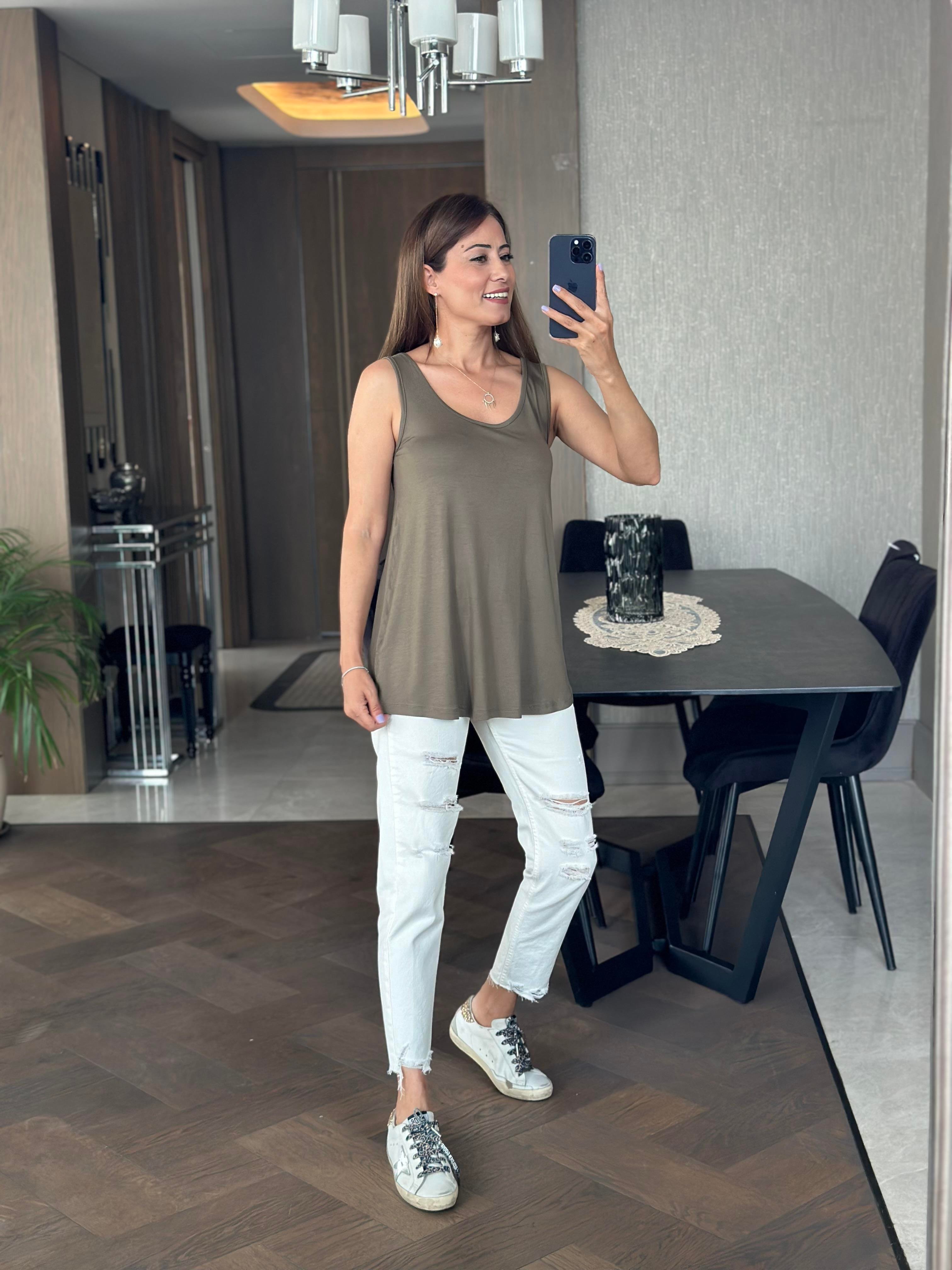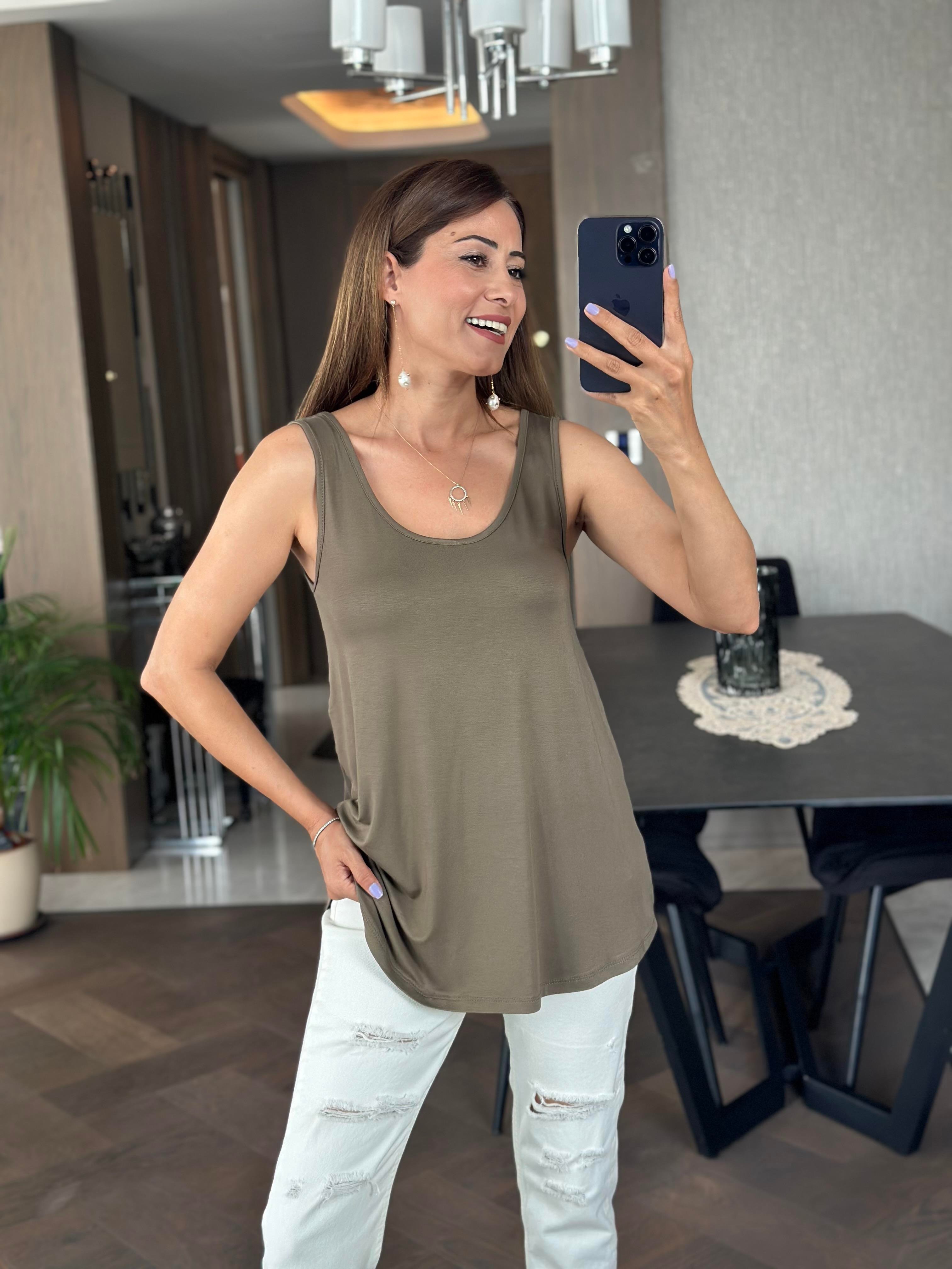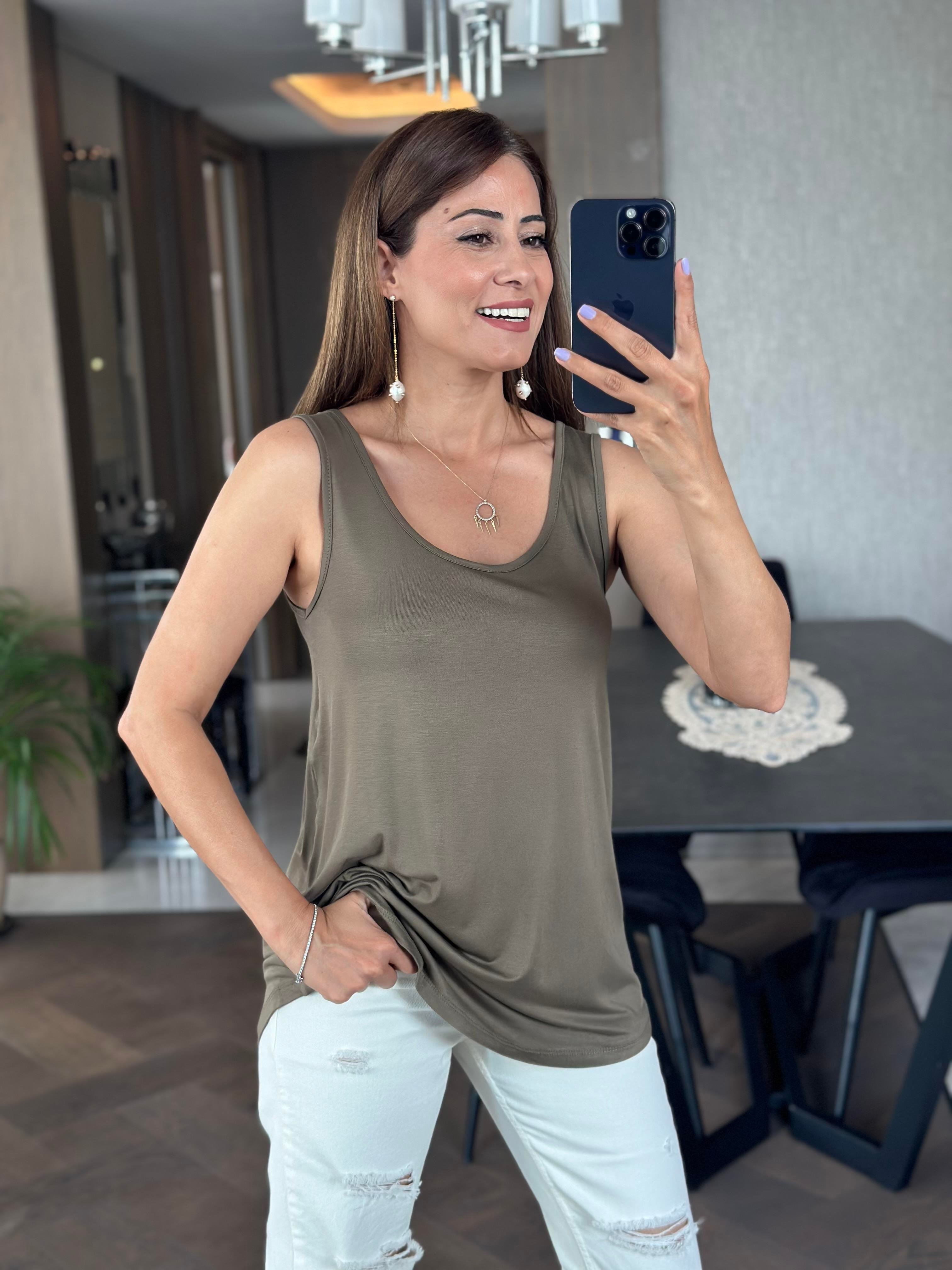 Haki Askılı Eteği Oval Oversize Kadın Bluz (FOR3432)
