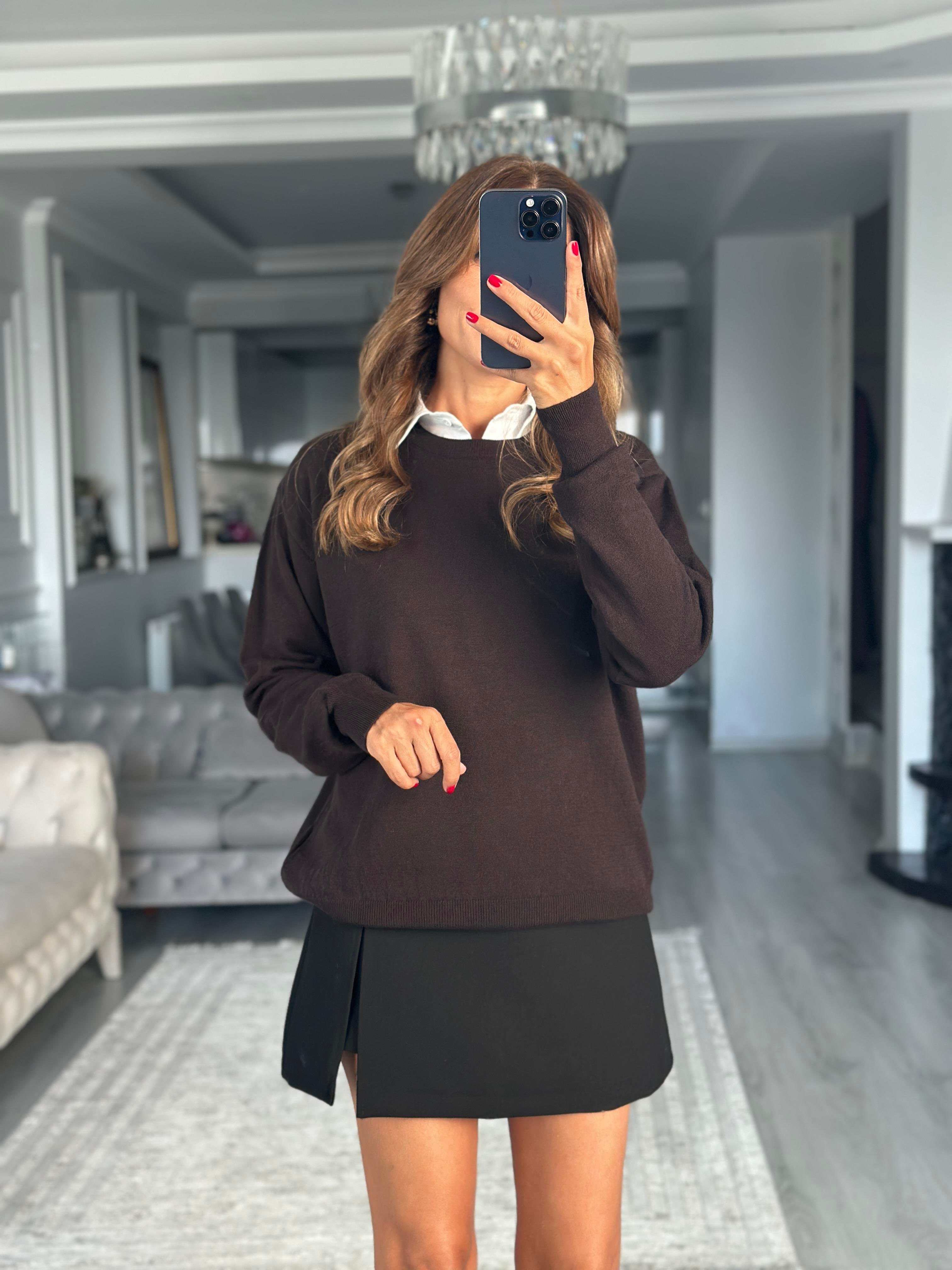Kahverengi Bisiklet Yaka Yünlü Basic Kadın Triko Kazak (FOR5218)