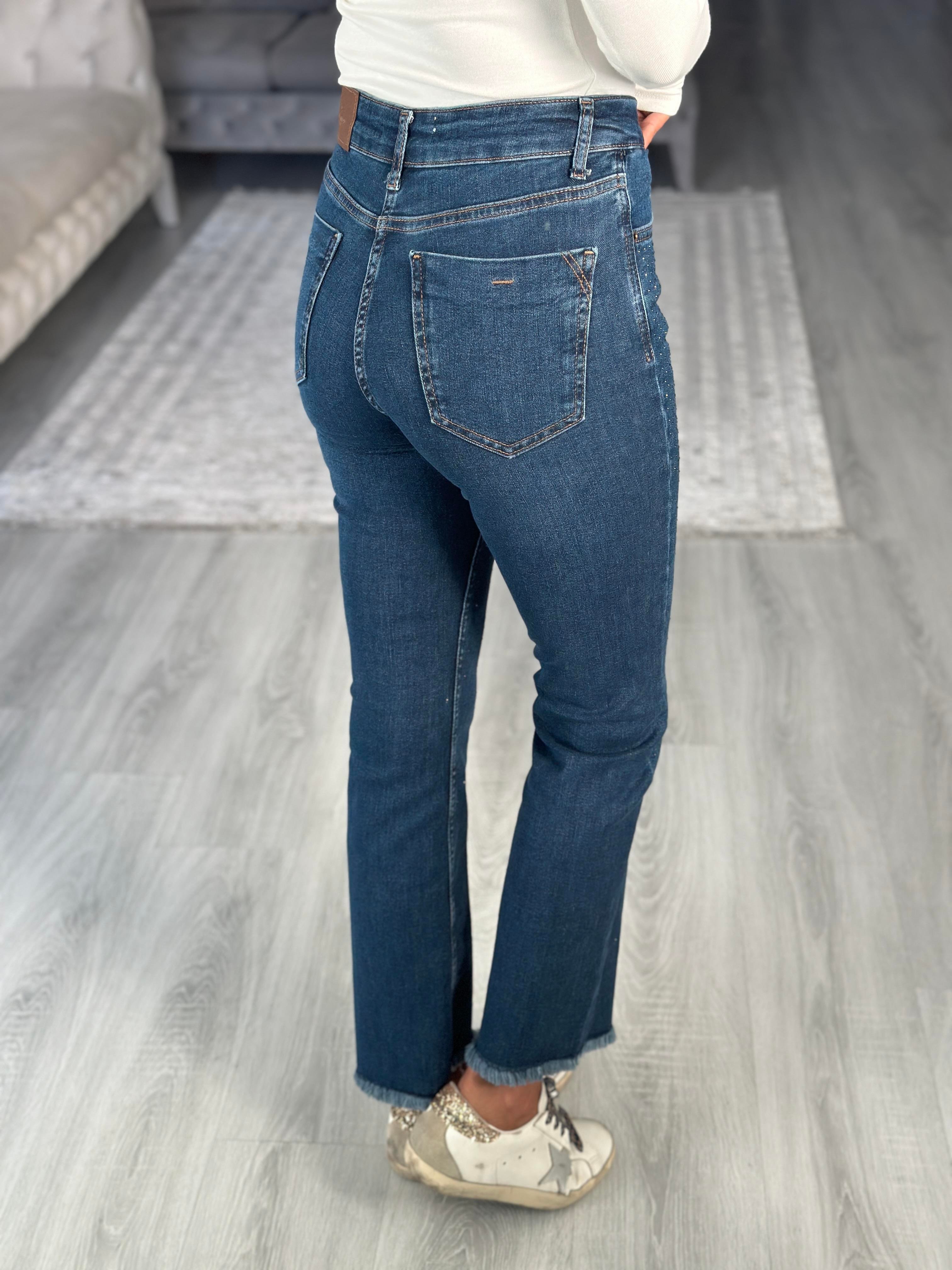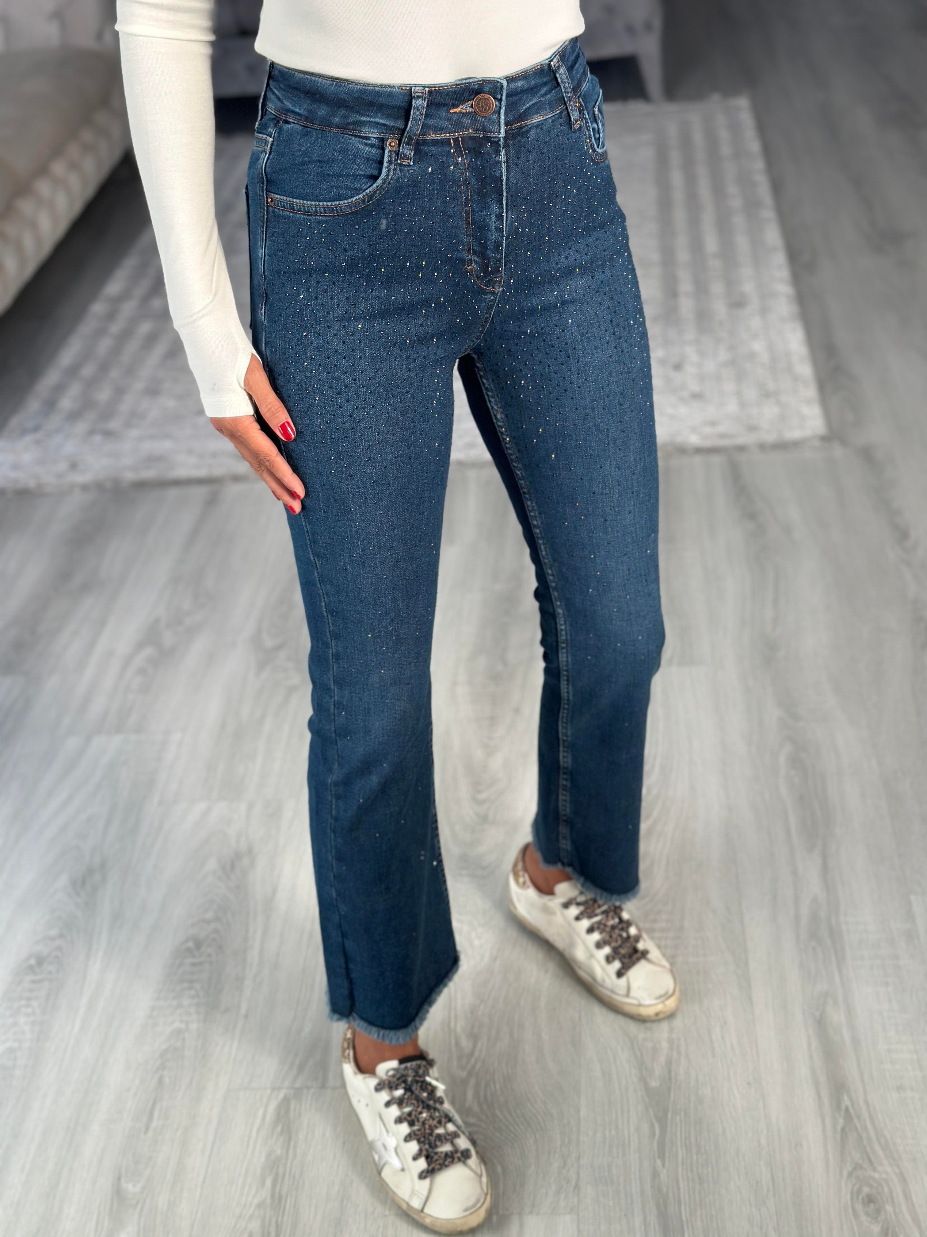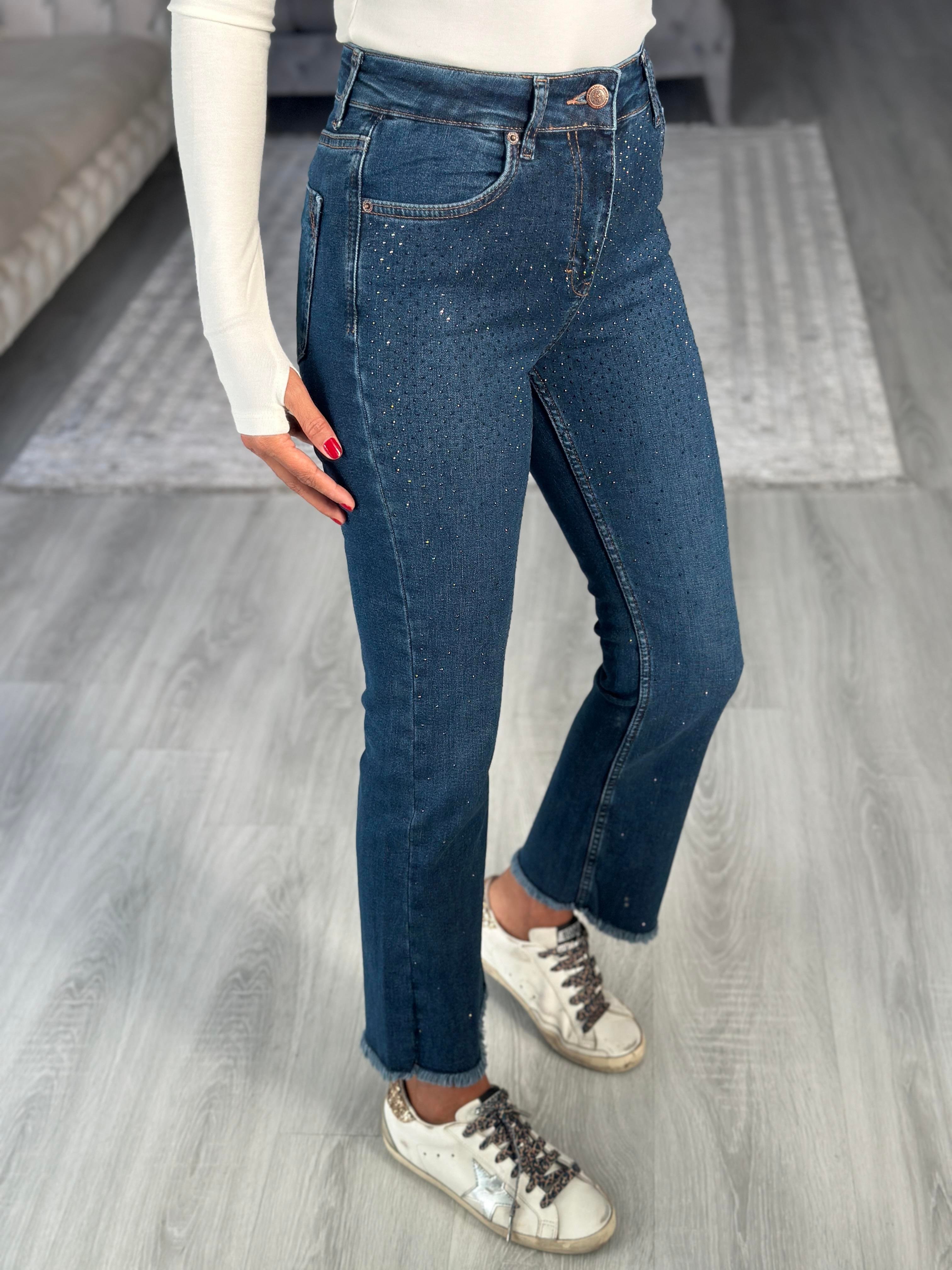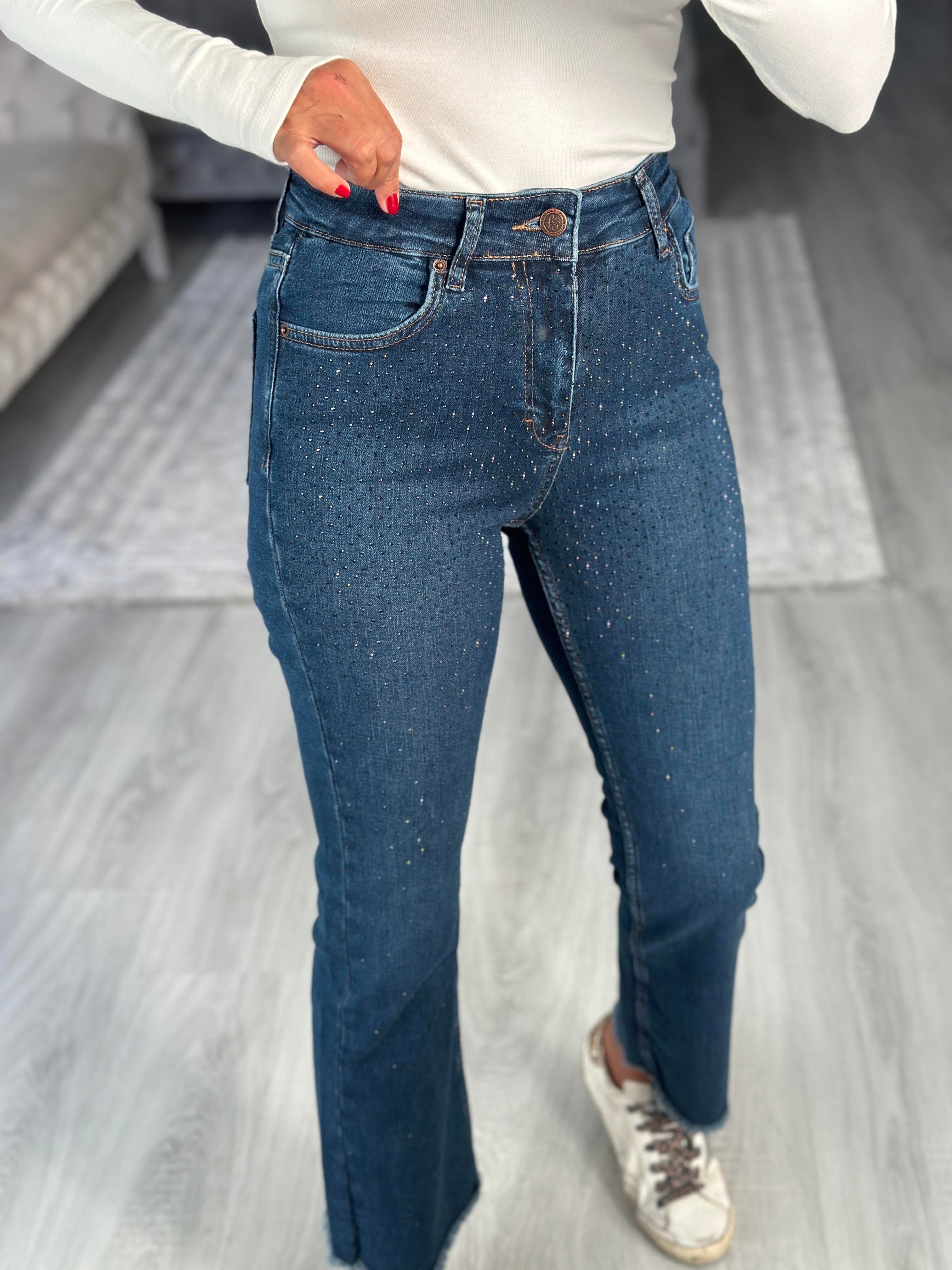 Mavi Önü Taşlı Flare Kadın Jean Pantolon