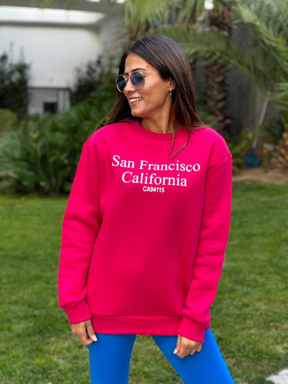 Pembe San Bisiklet Yaka Kadın Sweatshirt
