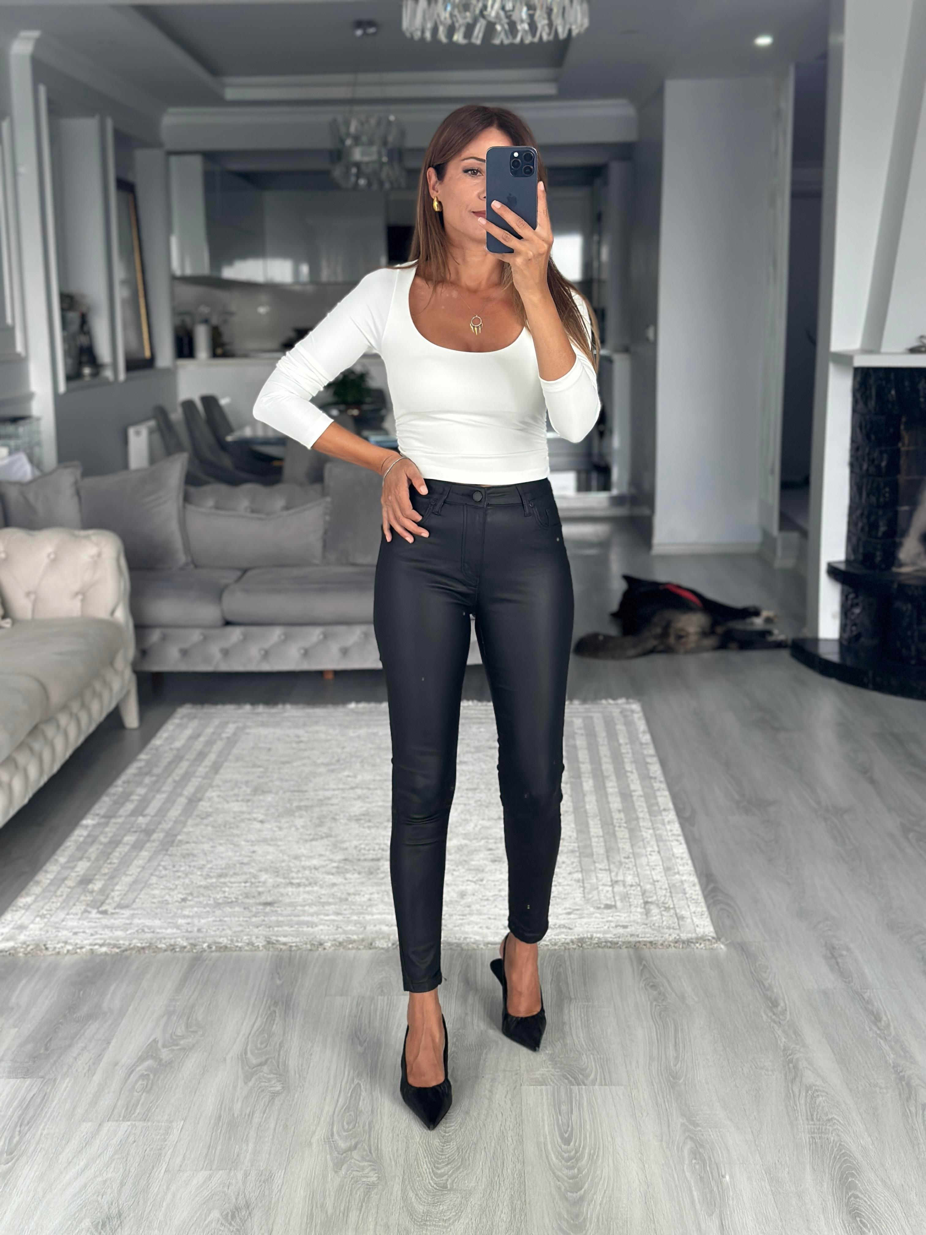 Siyah Lacarino Mum Kaplamalı Skinny Kadın Jean Pantolon